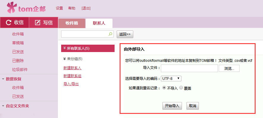 (3)即可导入成功,导入的联系人将显示在联系人列表